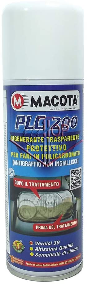 Codice prodotto: 42128 Articolo: PLC 200 - RAVVIVANTE TRASPARENTE PROTETTIVO 200 ml PLC 200 200 ml -RAVVIVANTE TRASPARENTE PROTETTIVO. Prodotto realizzato per policarbonato, in particolare per fari di auto e moto.Caratteristiche tecniche: Alto potere di brillantezza. Non ingiallisce. Ottima resistenza al graffio e al lavaggio anche con detergenti forti. Copre perfettamente piccoli graffi. Asciuga in 10 minuti.Preparazione al trattamento del faro: Pulire accuratamente la superficie prima di verniciare, togliere accuratamente eventuali tracce di olio, grasso e silicone, è inoltre sempre consigliato lavare con SOLVENTE ANTISILICONICO (per fari particolarmente deteriorati carteggiare leggermente con carte abrasive all'acqua, iniziando con P400 800 2000). In condizioni di bassa temperatura ed alta umidità, asciugare bene ed aiutarsi con un asciugacapelli, quindi applicare il prodotto con 2 - 3 passaggi a strati sottili, a distanza di 2 minuti